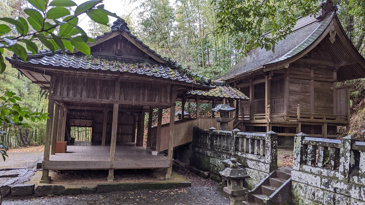 たいへん立派な造りの神社でございます。お参りをしたら、右側から車道に上がることができます。