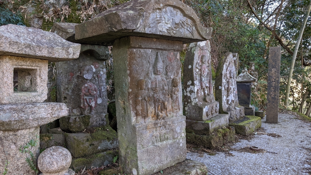 この場所の文字塔の中も特に立派なものを1基紹介します。銘の文字が薄れてきているのが惜しまれます。これまで紹介してきた刻像塔に比べますとどうしても地味で目立ちませんが、碑面の枠取りの仕方が丁寧で、格好のよい塔です。