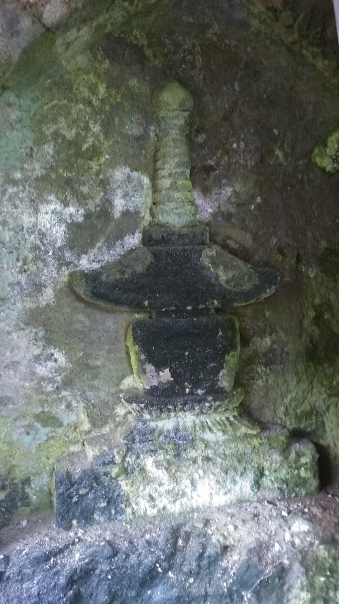 磨崖仏の岩壁の正面には碑銘と宝塔が残っています。個々に紹介します。