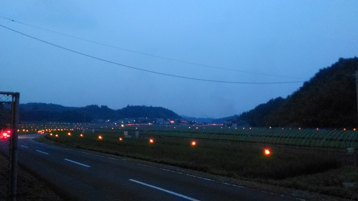 盆踊りの晩には、近隣の道路や畦の一面に小さな松明を立てまして、時間になると一斉に火を点します。冒頭の写真は、数年前に新田小学校のところで撮影したものです。このような行事を小松明(こだい)と申しまして、本来は虫送りの行事です。農薬の普及する以前は害虫駆除(主にいなご)が大問題で、類似する行事が昔はあちこちで行われていました。今は、虫送りのおまじないというよりは、地域のレクリエーションとしての位置づけであろうと思います。大野地方はこの種の行事がよう保存されており、町内では菅尾地区でも「菅尾石仏火祭り」の際に行われているほか、緒方町では非常に盛大に行われており観光宣伝もなされています。部落内で小規模に行う事例は朝地町ほか方々で見かけます。観光主体の行事であっても子供会等の夏のイベント行事であっても、昔の年中行事を伝え残すのは立派なことだと思います。