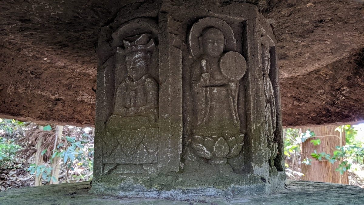 私には全く読み取れなかったものの、豊後大野市の説明によれば幢身に銘文がある由、その内容から衛藤主計允が月叟(地蔵院の院主)の逆修のために建てさせたものとであり、紀年銘は見当たらないものの、室町時代後期頃の造立と考えられるとのことです。