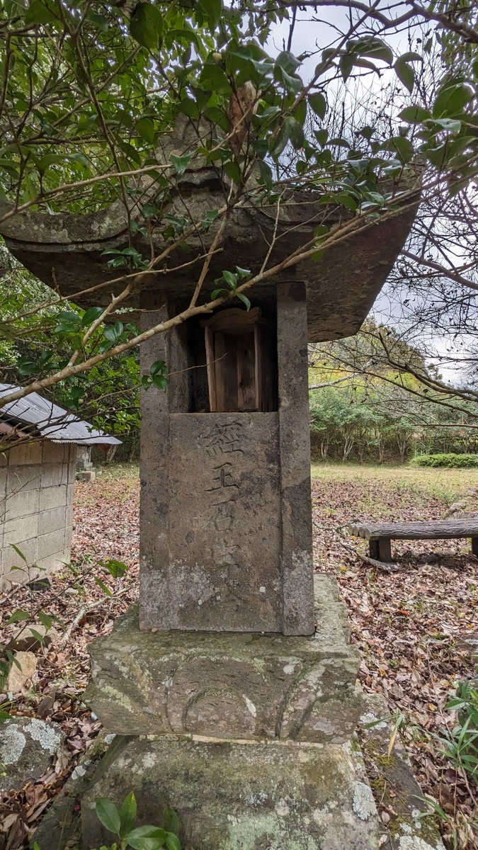 一字一石塔の方は南海部方面で盛んに見かけるタイプです。上の仏様の頭部は、別石ですげ替えてあります。首のなくなった仏様を見かねて、どなたかが新しい頭部を奉納されたのでしょう。失礼ながら接合部やその表情に違和感を禁じ得ませんが、その背景にある素朴な信仰心に胸を打たれました。台座の側面には長い銘文が彫ってあります。読み取りは省きます。
