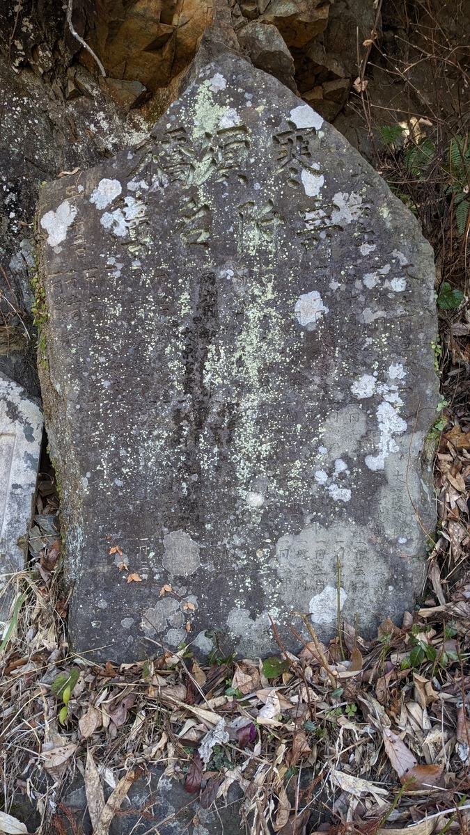 前回の末尾に九品寺跡を紹介した際、その道順で寒須橋が出てきました。そのすぐそば、道路端の崖下に月待塔と寒須橋の碑銘が立っています(冒頭の写真)。すぐ分かります。地名は、近くに立っている山地災害危険地区の看板から引きました。なお、この2基は別項立として、まず月待塔から紹介します。
