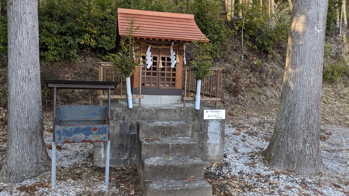 このように小さなお社が鎮座しとり、どなたでも自由に参拝できます。炭焼小五郎伝説の、あの壮大なお話に思いを馳せて、家内安全をお願いしました。